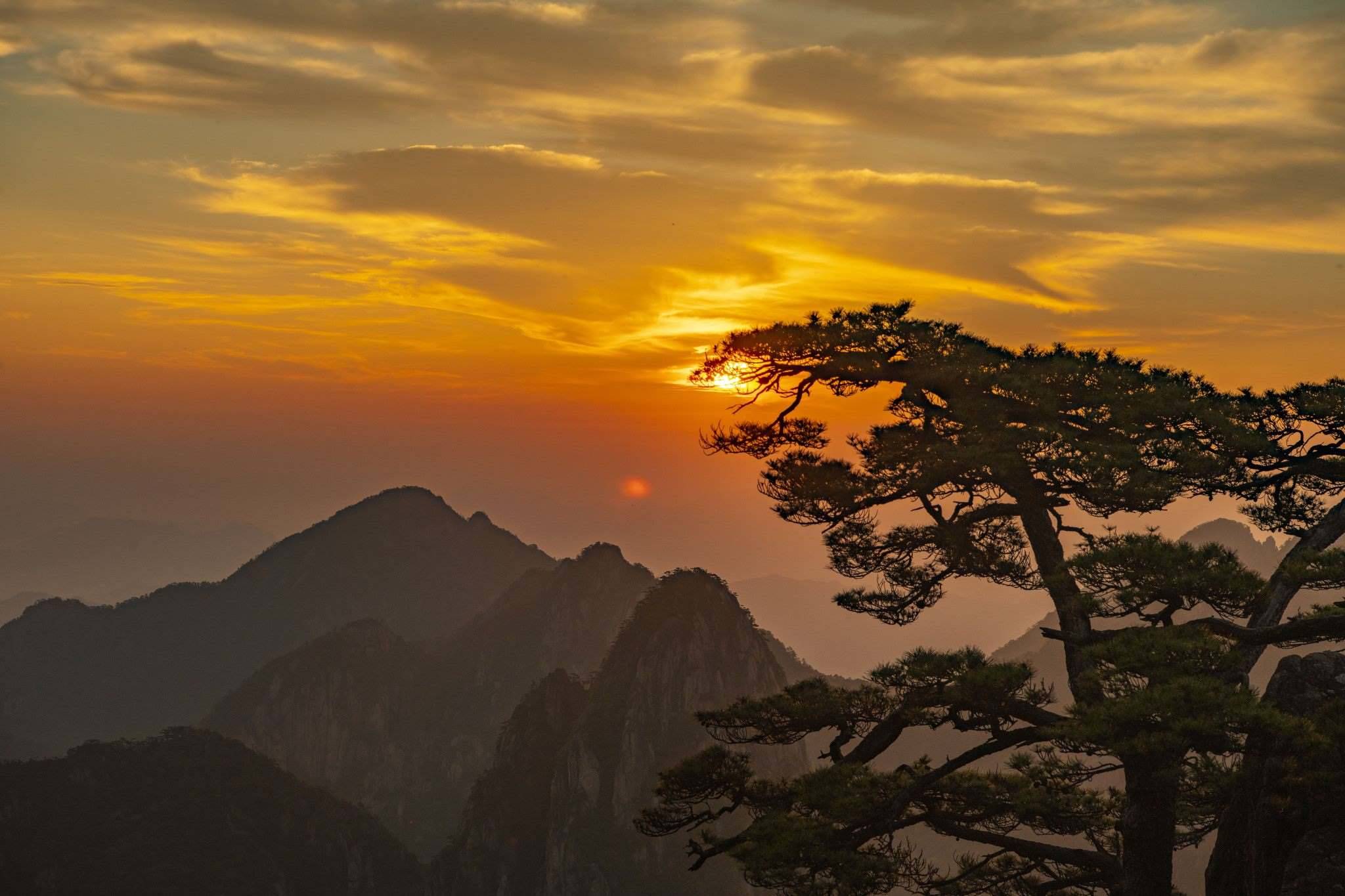 2023年5月29日,安徽黃山,初夏時節(jié),霞光渲染下的奇峰秀色令人流連忘返。視覺中國