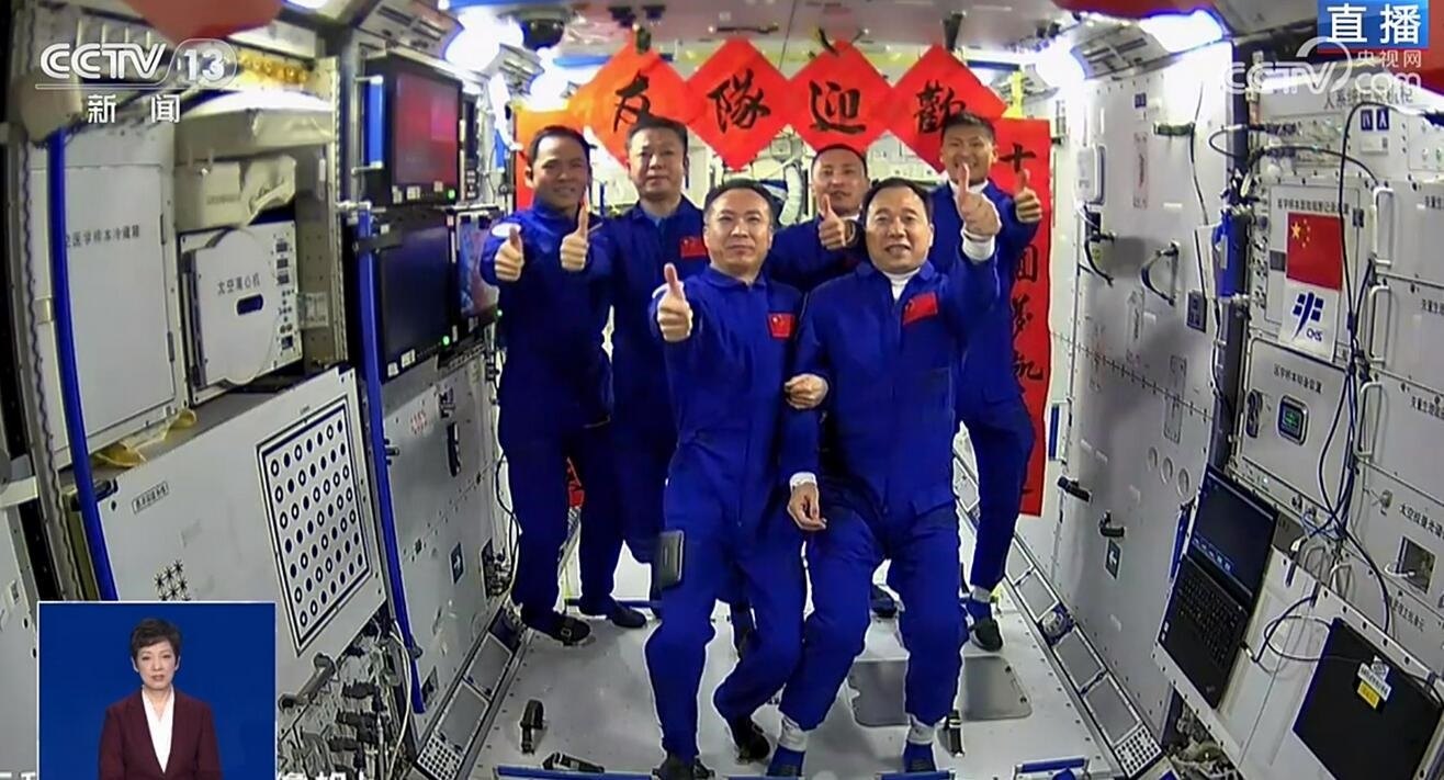 央視網(wǎng)消息:宇宙星河浪漫,探索永不止步。今天(5月30日)9時(shí)31分,搭載神舟十六號(hào)載人飛船的長(zhǎng)征二號(hào)F遙十六運(yùn)載火箭在酒泉衛(wèi)星發(fā)射中心點(diǎn)火發(fā)射,發(fā)射任務(wù)取得圓滿成功。神舟十六號(hào)航天員景海鵬、朱楊柱、桂海潮順利進(jìn)入太空。神舟十六號(hào)載人飛船入軌后,在16時(shí)29分成功對(duì)接于空間站天和核心艙徑向端口。之后,神舟十六號(hào)航天員乘組從飛船返回艙進(jìn)入軌道艙。翹盼已久的神舟十五號(hào)航天員乘組打開“家門”,歡迎遠(yuǎn)道而來的神舟十六號(hào)航天員乘組入駐“天宮”。