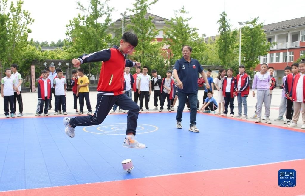 5月30日,河南省濟源市梨林鎮(zhèn)中心小學的學生參加校園足螺比賽。 新華社發(fā)(苗秋鬧攝)