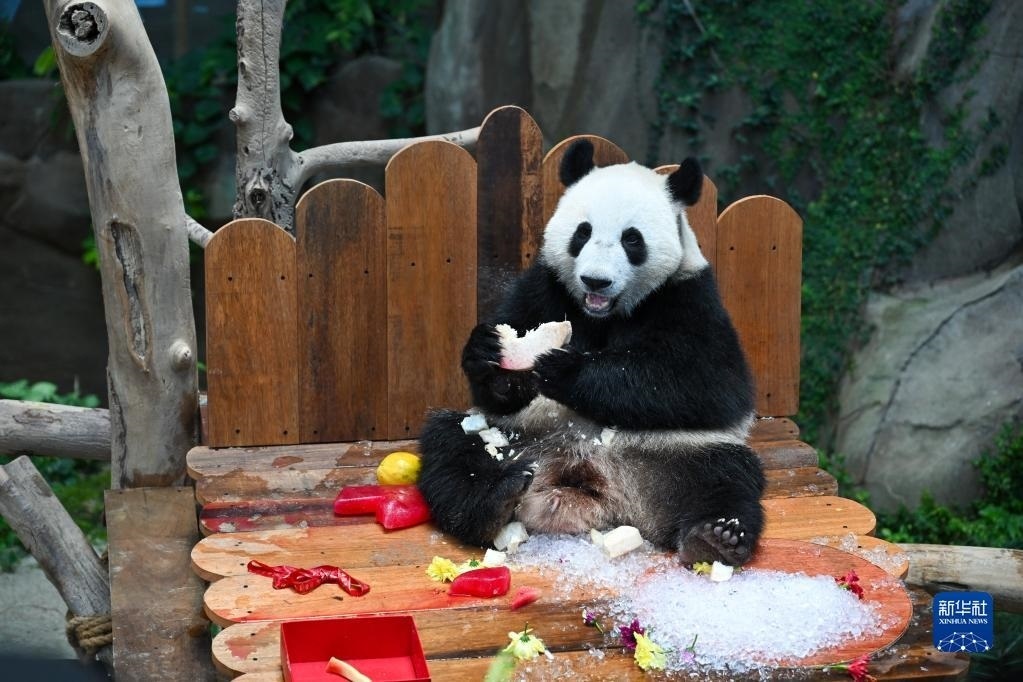 當(dāng)日,大熊貓寶寶“升誼”迎來兩歲生日,動物園為它準(zhǔn)備了特別的生日大餐,眾多民眾前往動物園為它慶生?!吧x”是中國旅馬大熊貓“興興”和“靚靚”生下的第三只寶寶,出生于2021年5月31日中馬建交47周年紀念日當(dāng)天。新華社記者 朱煒 攝