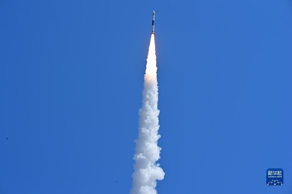 6月9日10時(shí)35分,我國在酒泉衛(wèi)星發(fā)射中心使用快舟一號(hào)甲運(yùn)載火箭,成功將龍江三號(hào)試驗(yàn)衛(wèi)星發(fā)射升空,衛(wèi)星順利進(jìn)入預(yù)定軌道,發(fā)射任務(wù)獲得圓滿成功。新華社發(fā)(王衡 攝)
