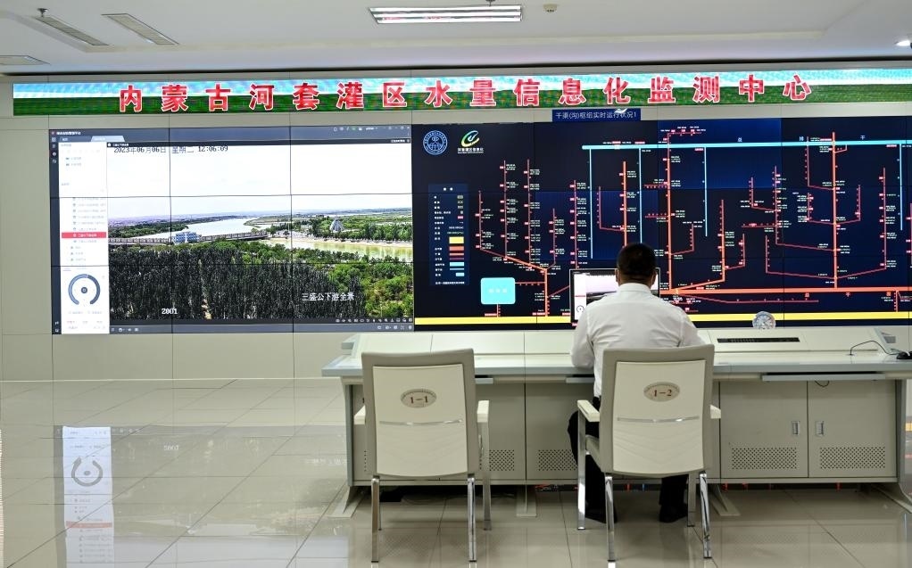 這是6月6日拍攝的河套灌區(qū)水量信息化監(jiān)測(cè)中心一景。新華社記者 貝赫 攝