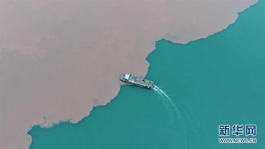 受近期長(zhǎng)江上游持續(xù)降雨影響,位于重慶涪陵的長(zhǎng)江與烏江交匯處,兩江因含沙量不同而顏色對(duì)比鮮明,形成猶如重慶火鍋中“鴛鴦鍋”景觀。新華網(wǎng)發(fā) (夏雷 攝)
