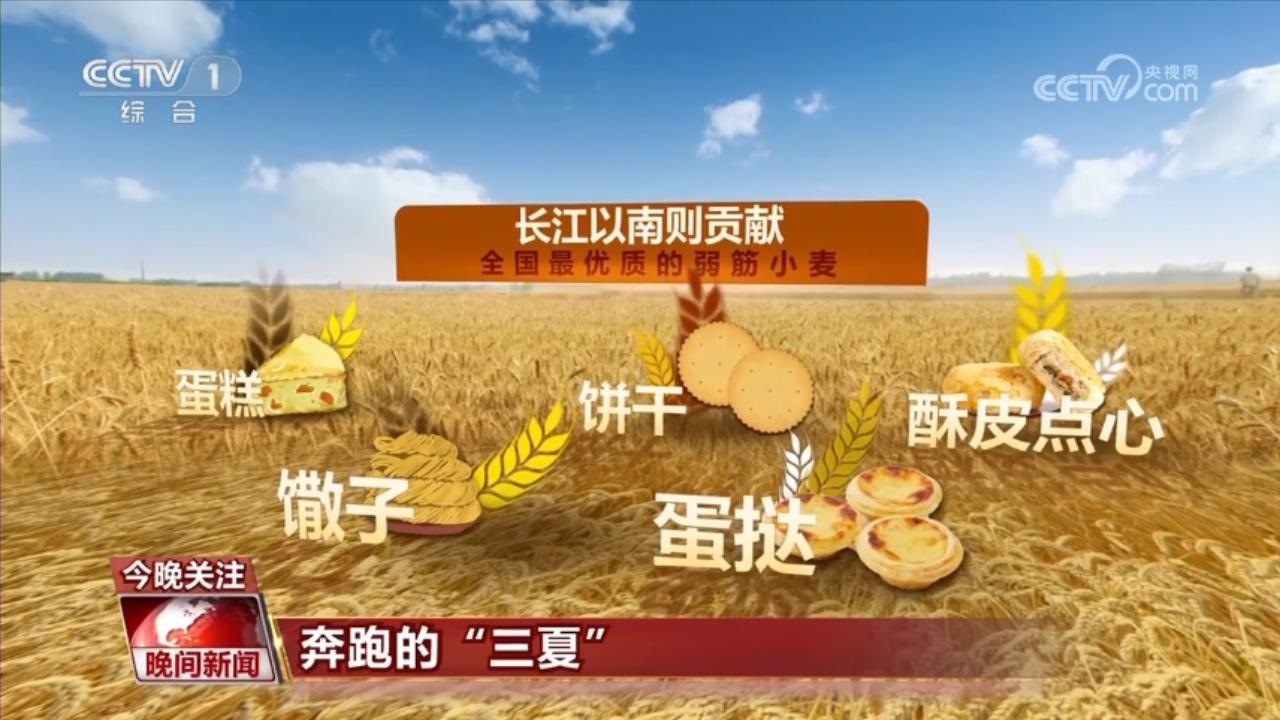 再向南看,與北方高筋、中筋小麥相對應(yīng)的,長江以南則貢獻(xiàn)了全國最優(yōu)質(zhì)的弱筋小麥,是蛋糕、餅干、馓子、蛋撻、酥皮點心等面食小吃的重要原料。