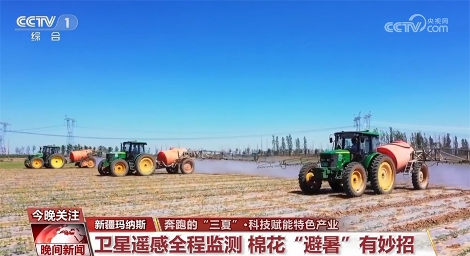 眼下,新疆昌吉瑪納斯縣的棉花正值現(xiàn)蕾期。現(xiàn)蕾期指的是出現(xiàn)花蕾到開花這一段時(shí)間,這個(gè)時(shí)候棉株生長最快,然而持續(xù)的高溫給田間管理帶來考驗(yàn)。在瑪納斯縣樂土驛鎮(zhèn)的棉花田里,三臺(tái)裝有北斗導(dǎo)航系統(tǒng)的大馬力拖拉機(jī)正按照預(yù)先設(shè)定的線路進(jìn)行除草作業(yè)。這是農(nóng)技人員通過衛(wèi)星遙感棉花全程監(jiān)測技術(shù),幫種植戶制定的科學(xué)田管方案。