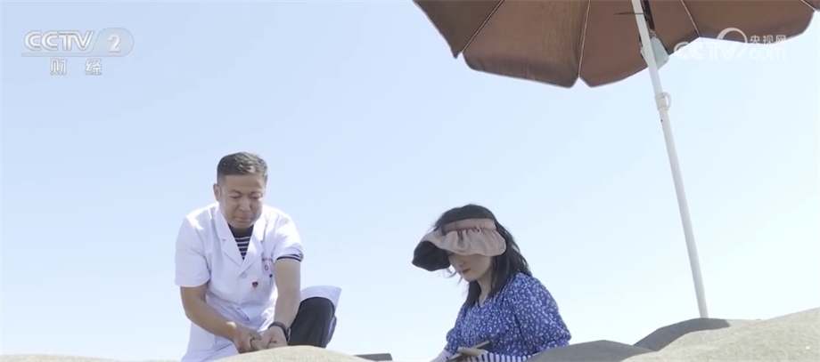 連日來的高溫天氣讓新疆吐魯番掀起了沙療“熱”。沙療是利用當(dāng)?shù)鬲毺氐墓鉄豳Y源和氣候地理條件進行的治療方式,讓高溫天氣成為了當(dāng)?shù)厝罕娫鍪罩赂坏摹盁豳Y源”。