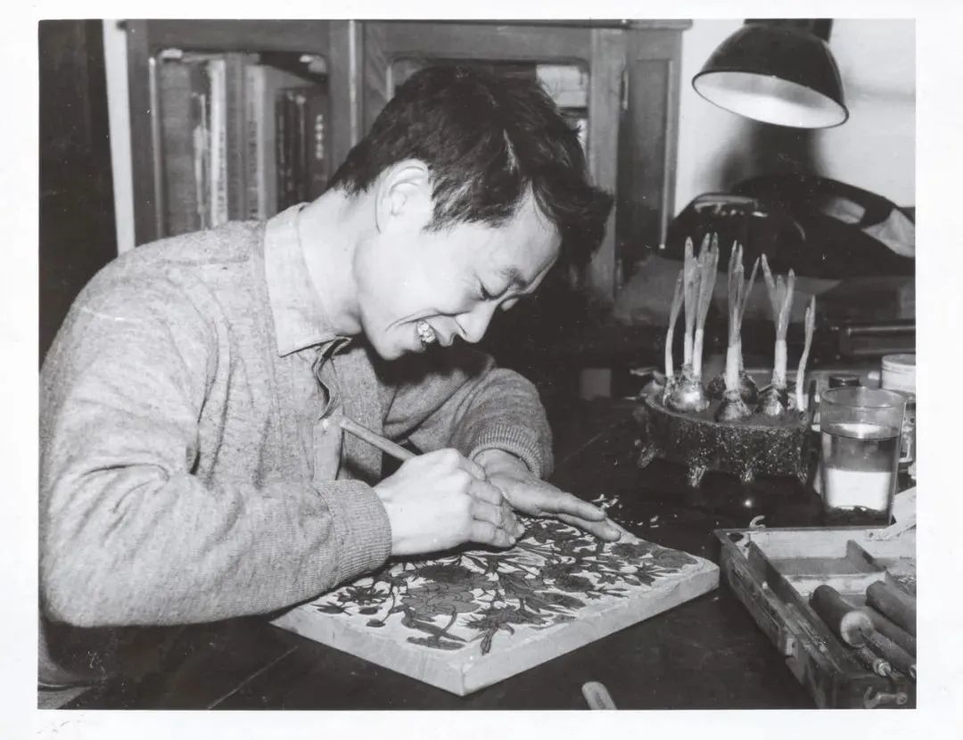 1962年黃永玉在校尉營美院宿舍刻花卉