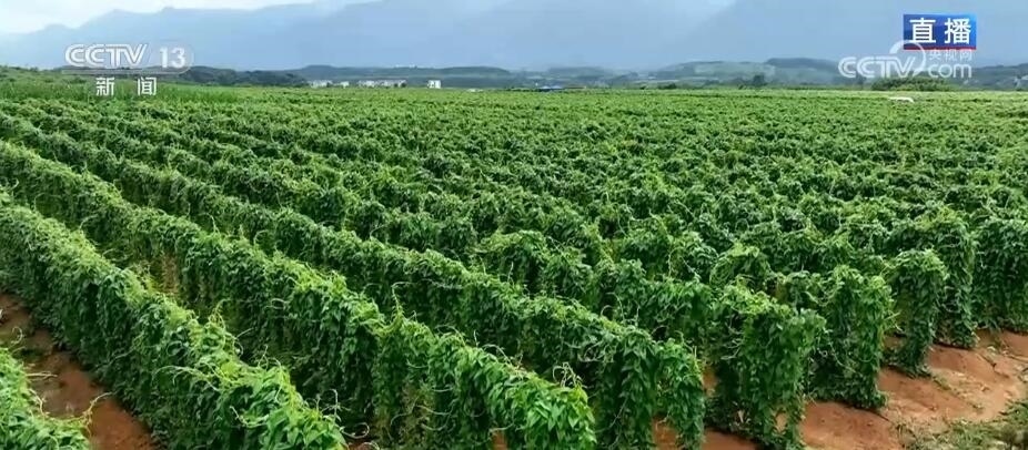 央視網(wǎng)消息: 當(dāng)下,在廣西賀州市富川瑤族自治縣,上萬畝的淮山正陸續(xù)進(jìn)入營養(yǎng)生長期,村民們忙著開展各種管護(hù)工作??偱_記者廖汨就正在富川的一個(gè)淮山種植基地,馬上來連線她。