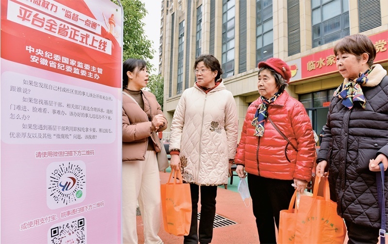 2023年2月17日,安徽省合肥市蜀山區(qū)井崗鎮(zhèn)紀(jì)委和衛(wèi)樓社區(qū)工作人員在引導(dǎo)居民關(guān)注了解小微權(quán)力“監(jiān)督一點(diǎn)通”平臺(tái)相關(guān)知識(shí)。 中新社發(fā) 葛宜年/攝