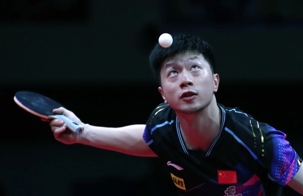 9月10日,馬龍?jiān)诒荣愔邪l(fā)球。新華社發(fā)(李相浩攝)