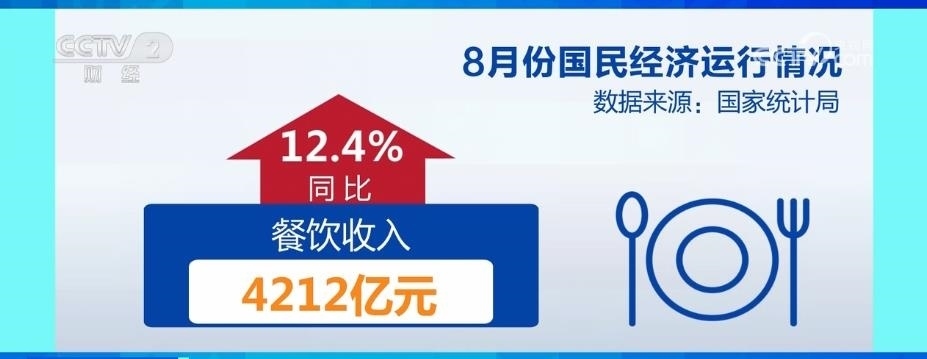 市場(chǎng)銷(xiāo)售加快恢復(fù),8月份,社會(huì)消費(fèi)品零售總額37933億元,同比增長(zhǎng)4.6%,增速比上月加快;餐飲收入4212億元,同比增長(zhǎng)12.4%,保持較快增速。