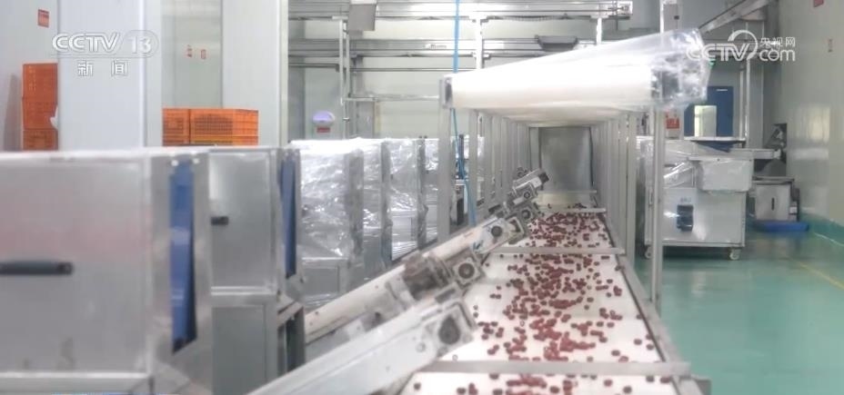 央視網(wǎng)消息:眼下,河南新鄭紅棗迎來盛果期。棗園里,顆顆紅棗像串成寶石項鏈一般掛滿枝頭,采收工人正忙著打棗、收棗,一派繁忙景象。
