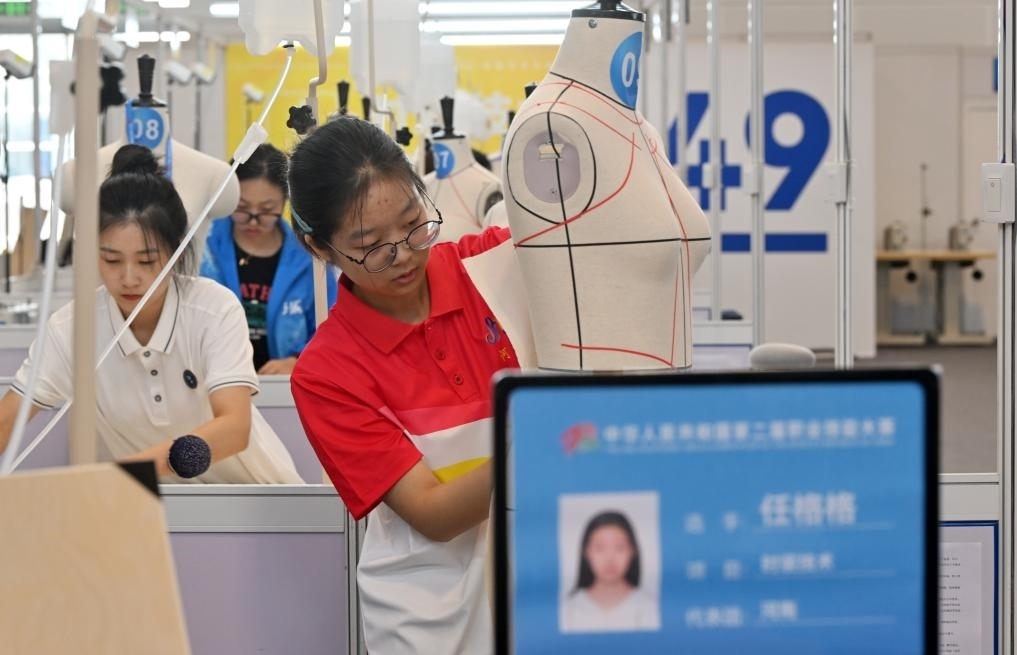 選手在參加時裝技術(shù)項(xiàng)目的比賽。新華社記者 李然 攝