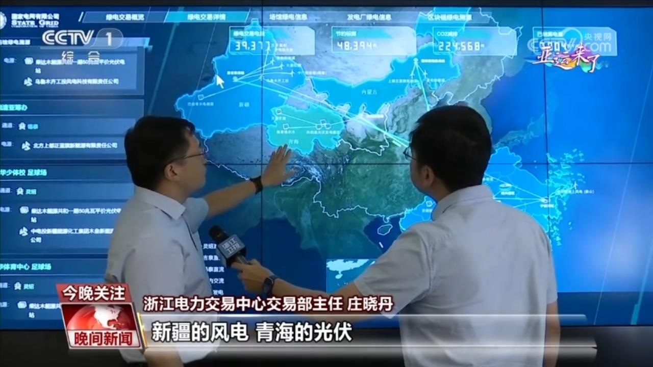 浙江電力交易中心交易部主任 莊曉丹:新疆的風(fēng)電、青海的光伏以及內(nèi)蒙古的風(fēng)電,分別通過三條特高壓直流線路,向浙江提供綠色電力供應(yīng)。