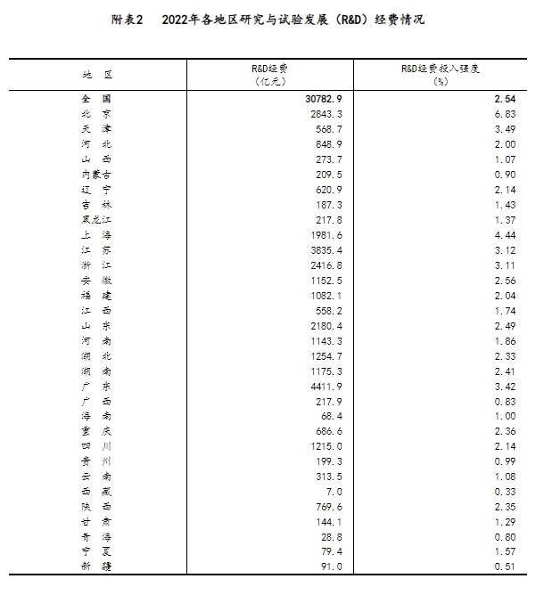 央視網(wǎng)消息:9月18日,國家統(tǒng)計局、科學技術(shù)部、財政部公布2022年全國科技經(jīng)費投入統(tǒng)計公報。內(nèi)容如下: