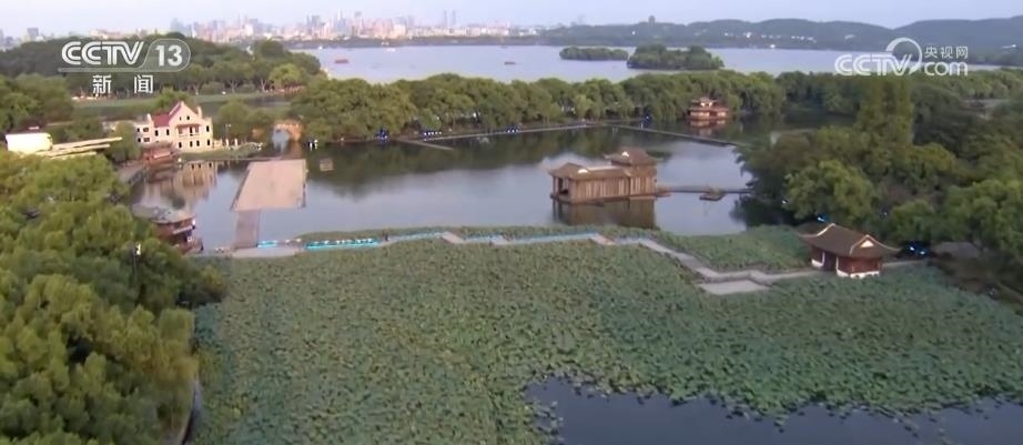 總臺(tái)記者 梁燁:說(shuō)到浙江杭州,很多人第一印象就是西湖。雷峰塔是西湖南邊的最高塔,站在這里可以從南向北俯瞰到杭州西湖的全貌。