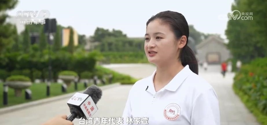 臺灣青年代表 林家萱:很感激這些英勇的先烈們,如果沒有他們的統(tǒng)一對外抗戰(zhàn)的話,其實(shí)沒有現(xiàn)在我們平安順?biāo)斓慕裉臁?br>