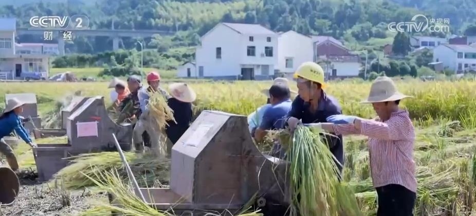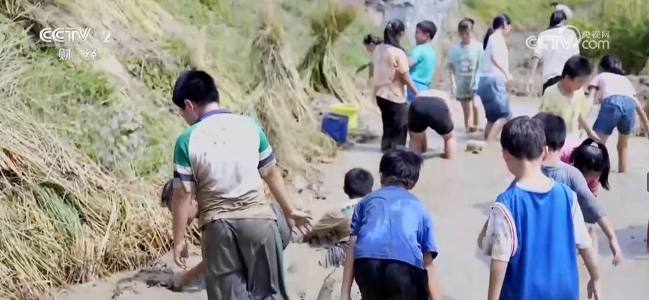 為慶?!熬扌偷尽痹嚪N成功,當(dāng)?shù)剡€舉行了一場(chǎng)“扮禾抓魚”比賽,村民們分成幾組,進(jìn)行人工收割、踩禾桶脫粒、扎稻草。孩子們則跳進(jìn)水溝抓魚,感受田園樂趣。