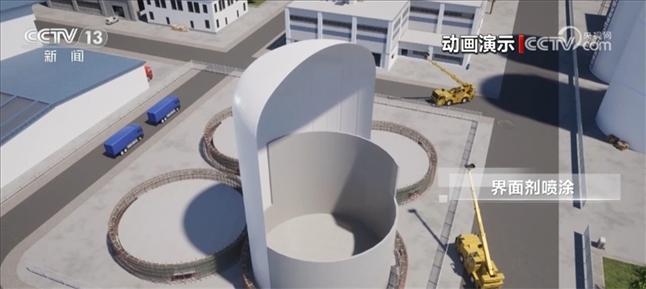 在外膜充氣成型后,整個施工過程都在膜內進行,施工過程機械化程度高、安全環(huán)保,幾乎不受環(huán)境和天氣影響。