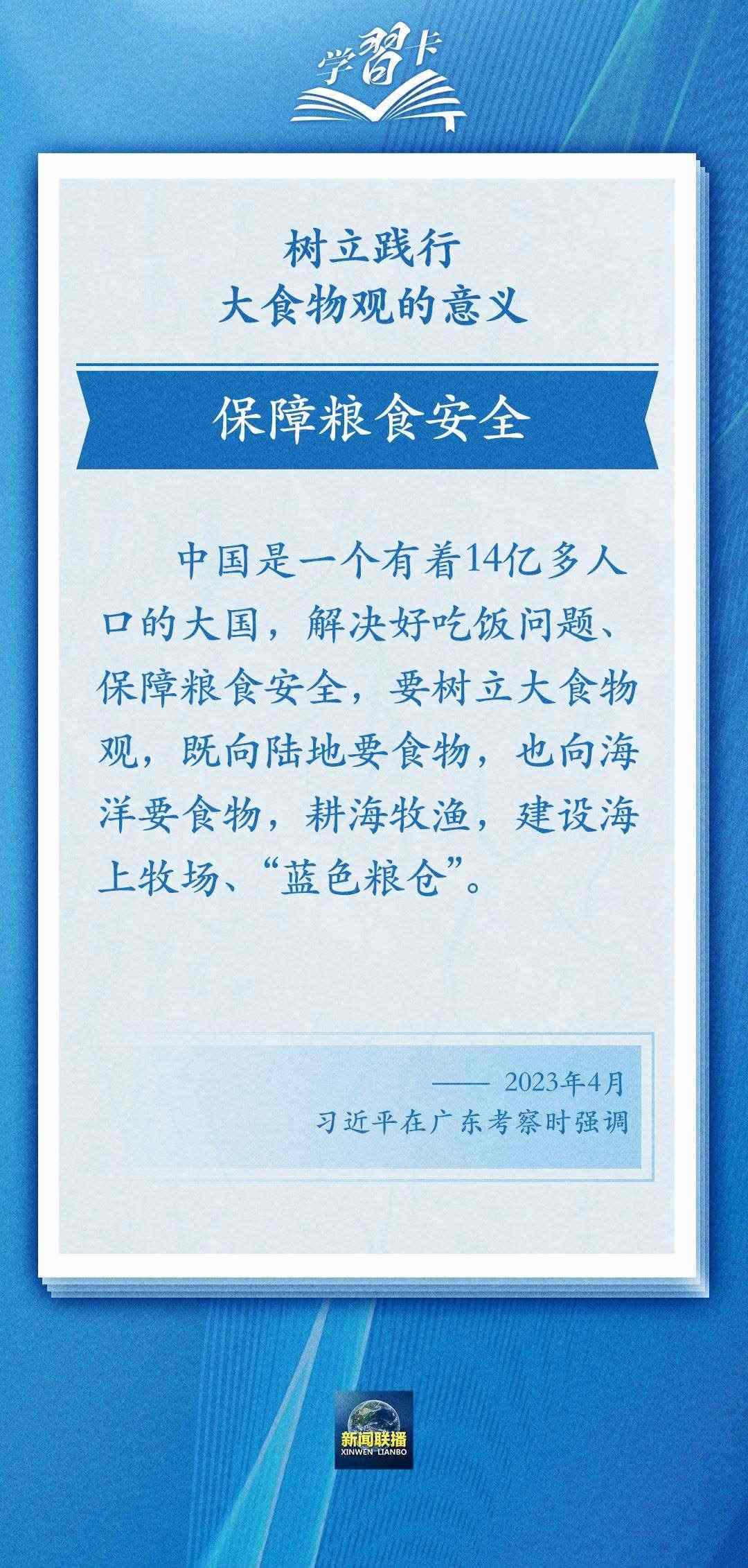 今年4月,總書記在廣東湛江考察時指出,要樹立大食物觀,既向陸地要食物,也向海洋要食物。前不久,總書記主持召開新時代推動?xùn)|北全面振興座談會強(qiáng)調(diào),踐行大食物觀,把農(nóng)業(yè)建成大產(chǎn)業(yè)。