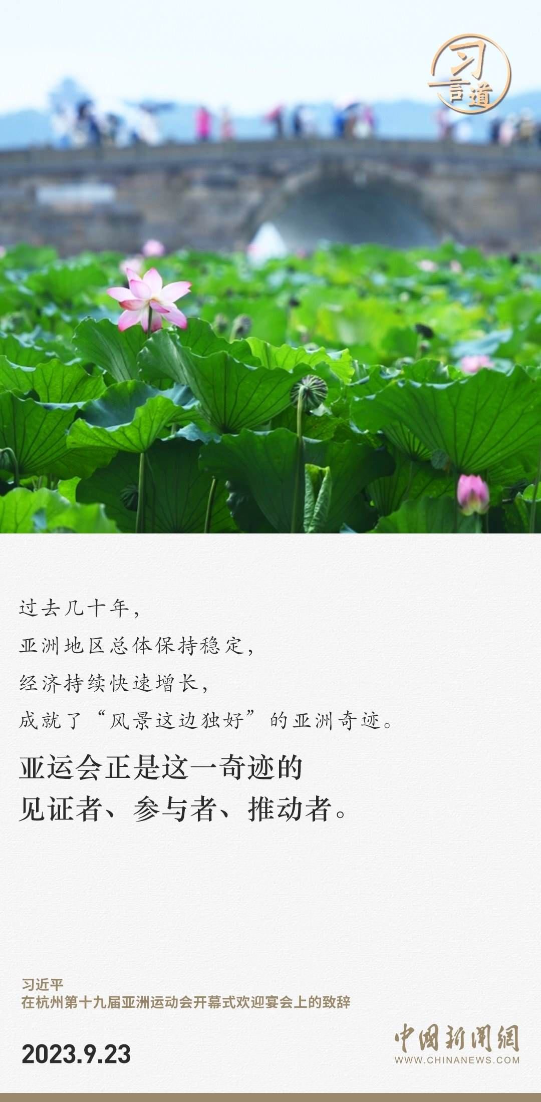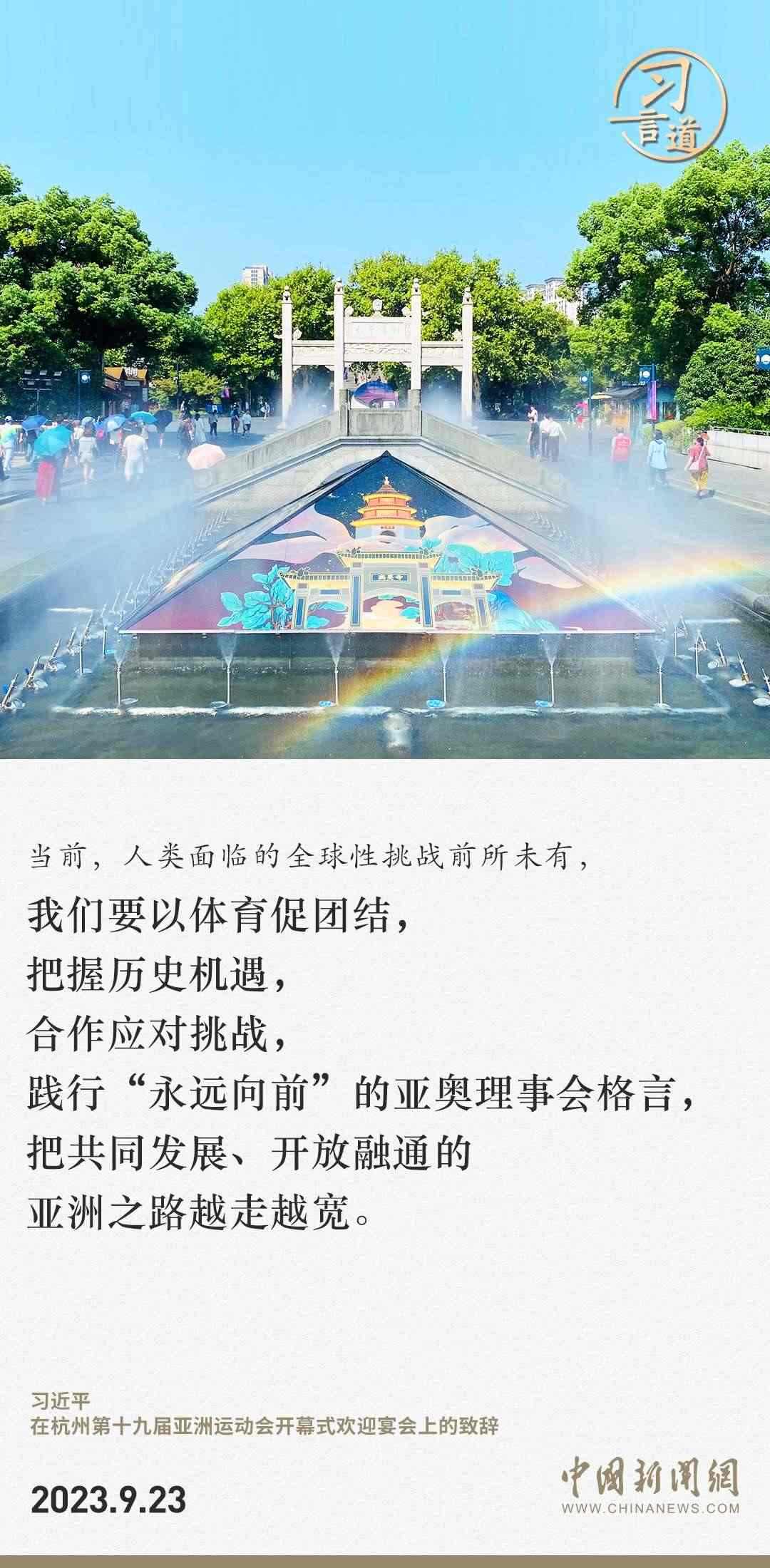 9月23日中午,國(guó)家主席習(xí)近平和夫人彭麗媛在浙江省杭州市西子賓館舉行宴會(huì),歡迎來(lái)華出席杭州第19屆亞洲運(yùn)動(dòng)會(huì)開(kāi)幕式的國(guó)際貴賓。習(xí)近平發(fā)表致辭指出——