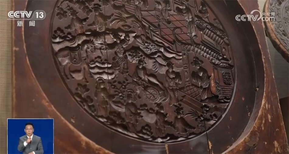總臺記者 羅子瑛:瞧,我發(fā)現(xiàn)的這塊月餅模具做出來的月餅直徑能夠達到五六十公分,上面雕刻的花紋記錄了一位新科狀元回家為母親祝壽的場景。可以說月餅這樣一種食物,是用最樸素的方式記錄了人們的美好生活。