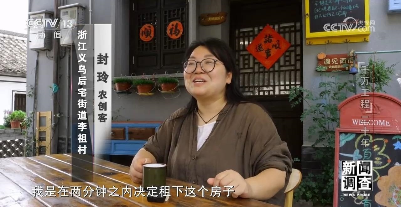 浙江義烏后宅街道李祖村農(nóng)創(chuàng)客 封玲:我是在兩分鐘之內(nèi)決定租下這個(gè)房子。當(dāng)時(shí)是沒有看到里面長什么樣子,然后我就在那個(gè)下面看到這個(gè)樓梯,看到這種老房子,然后看到門口的梔子花樹,我就說就它了。