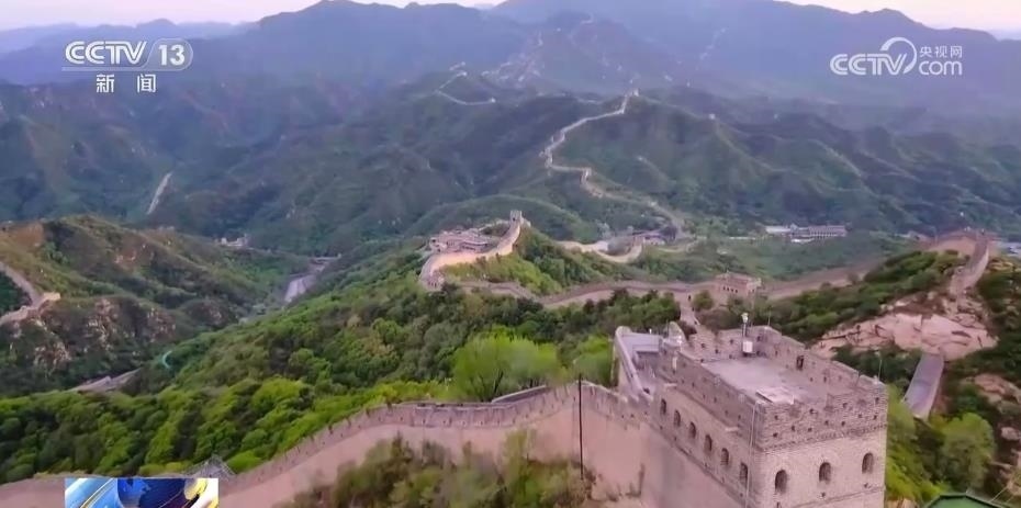 乘坐纜車幾分鐘后,記者就抵達了八達嶺長城的南四樓,長城的壯麗景象盡收眼底。伴隨著夕陽余暉,游客們俯瞰長城隨山巒起伏,很多人在“不到長城非好漢”的標記處打卡拍照。