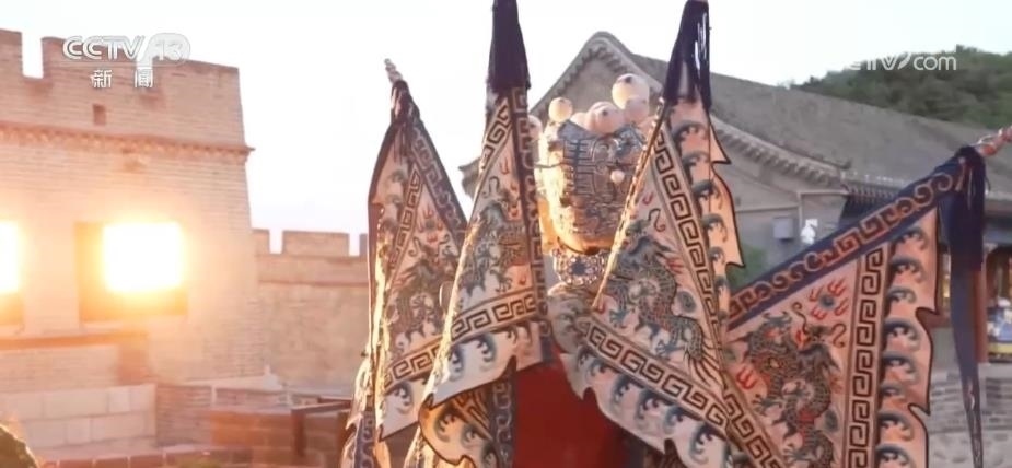 除了觀賞之外,八達嶺長城還為游客提供了豐富的消費體驗。在文化街區(qū)里,正在上演《夢回長城,八方來鶴》為主題的演出,游客們可以和京劇、地方歌舞的表演者互動。絢爛的燈光表演則為古老的長城增添了不少現代感與時尚感。穿上漢服,買一面國旗,品嘗一下長城的文創(chuàng)雪糕,市集小店里洋溢著濃濃的煙火氣。