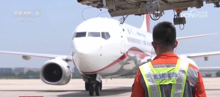 天津?yàn)I海國(guó)際機(jī)場(chǎng)有限公司地勤部機(jī)務(wù)分部副主任 王凱:現(xiàn)在暑期也快到了,旅客出行也會(huì)越來越多,為了保障旅客安全和飛行安全,就算天再熱,我們也會(huì)堅(jiān)守住自己的崗位,做好本職工作,保障飛機(jī)適航。