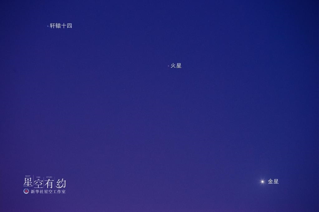 本次相合,火星與軒轅十四最近時(shí)僅有0.7度,就比一個(gè)滿月視直徑(約為0.5度)大一點(diǎn),不過(guò)受日光影響,無(wú)法看到它們相距最近時(shí)的情景。好在當(dāng)天20時(shí)左右,兩星近距離爭(zhēng)輝的場(chǎng)景在漸黑的暮色中依然會(huì)呈現(xiàn),感興趣的公眾可以嘗試觀測(cè)。