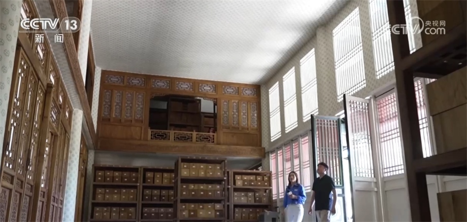 總臺記者 楊海靈:作為藏書樓,在設(shè)計建造時就考慮到了防火和防曬,所以不論是選址還是布局都蘊藏了很多精心的設(shè)計。