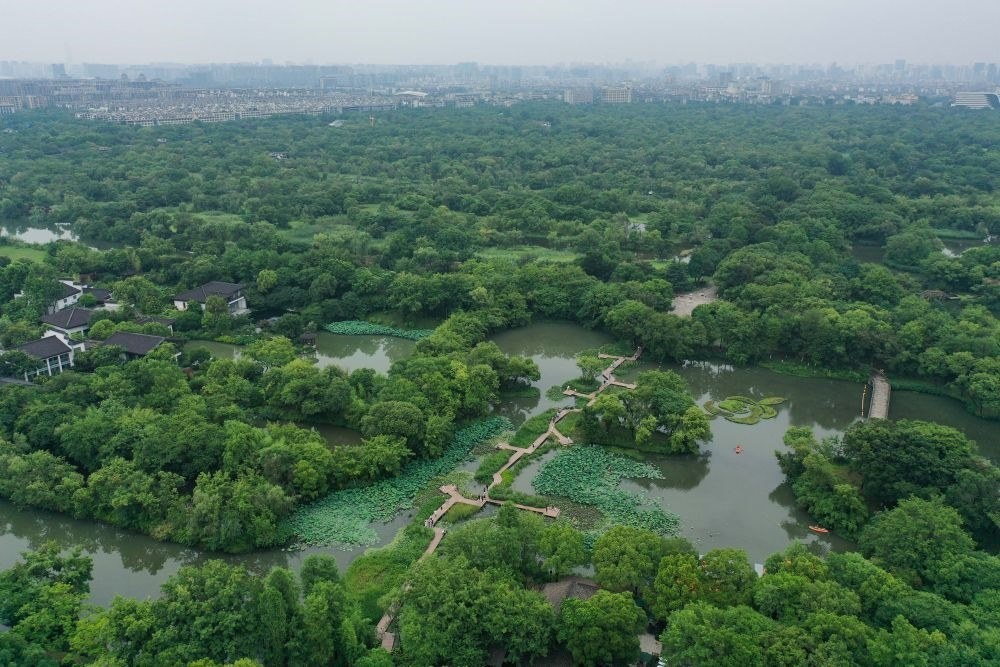 西溪國家濕地公園(無人機照片,6月17日攝)。新華社記者 黃宗治 攝