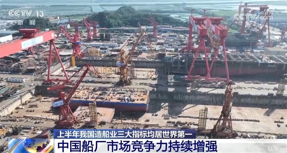 央視網(wǎng)消息:工業(yè)和信息化部今天(7月12日)發(fā)布我國造船業(yè)最新數(shù)據(jù),上半年我國造船業(yè)三大指標(biāo)均位居世界第一;新接訂單量的國際市場(chǎng)份額超過了70%,實(shí)現(xiàn)了我國造船業(yè)國際市場(chǎng)新接訂單量的新紀(jì)錄。?