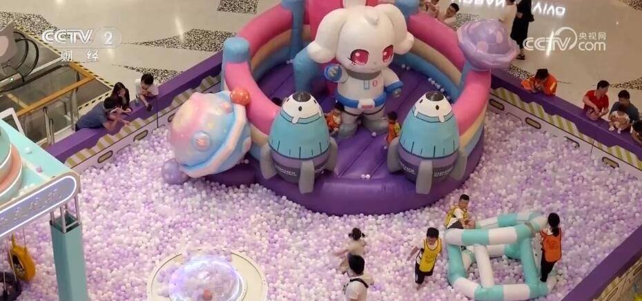 上海某商場運營經(jīng)理 趙佳麗:我們會在暑假檔的時候,在中庭引入一些比較熱門的IP(知識產(chǎn)權)游玩設施。另外,因為三樓是兒童業(yè)態(tài),所以全年都會安排一些固定的互動點來供周邊的家庭游玩。