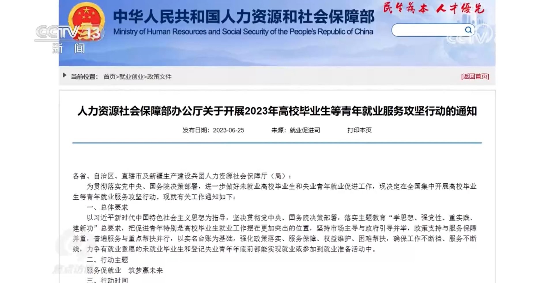 6月25日,人力資源社會(huì)保障部印發(fā)通知,部署啟動(dòng)2023年高校畢業(yè)生等青年就業(yè)服務(wù)攻堅(jiān)行動(dòng),要求省級(jí)人力資源社會(huì)保障部門(mén)7月底前,要建立2023屆未就業(yè)畢業(yè)生實(shí)名臺(tái)賬。