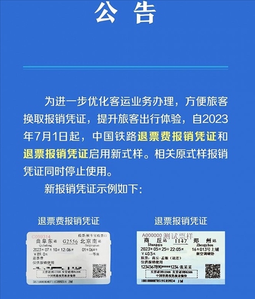 ·中國(guó)鐵路退票費(fèi)報(bào)銷憑證和退票報(bào)銷憑證啟用新式樣。