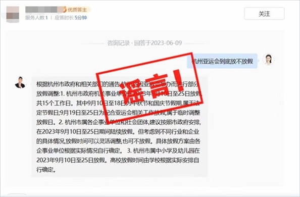 ·杭州因舉行亞運(yùn)會(huì)9月10日到25日放假?官方辟謠。