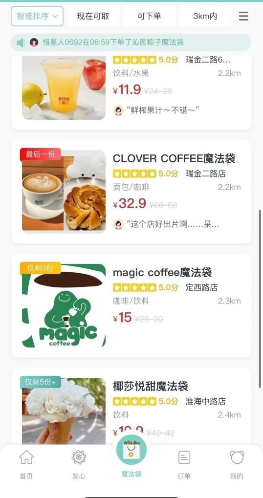 記者在上海登錄一個(gè)“盲盒”小程序,看到所在地周邊的部分商戶銷售一批名為“魔法袋”的產(chǎn)品,已經(jīng)吸引多個(gè)餐飲品牌加入。平均售價(jià)只有十幾元的“食物盲盒”,包含了多個(gè)烘焙產(chǎn)品。記者隨機(jī)選購(gòu)了一款“魔法袋”,到店取貨后看到,售價(jià)11.9元的“魔法袋”里有4個(gè)蛋撻、2個(gè)肉松蛋糕。如果按照原價(jià)購(gòu)買(mǎi),這些東西應(yīng)該需要20多元。