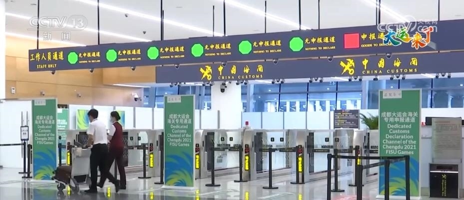 成都海關(guān)所屬雙流機(jī)場(chǎng)海關(guān)旅檢二科科長 李霄林:為了應(yīng)對(duì)大運(yùn)會(huì)人員集中通關(guān)的情況,我們?cè)O(shè)置了6條大運(yùn)會(huì)海關(guān)專用通道,并對(duì)集成了手提行李機(jī)檢等8項(xiàng)功能的智能通道進(jìn)行了升級(jí),由原來的“單通道”升級(jí)為“雙通道”,單人的通關(guān)速度提升了40%。