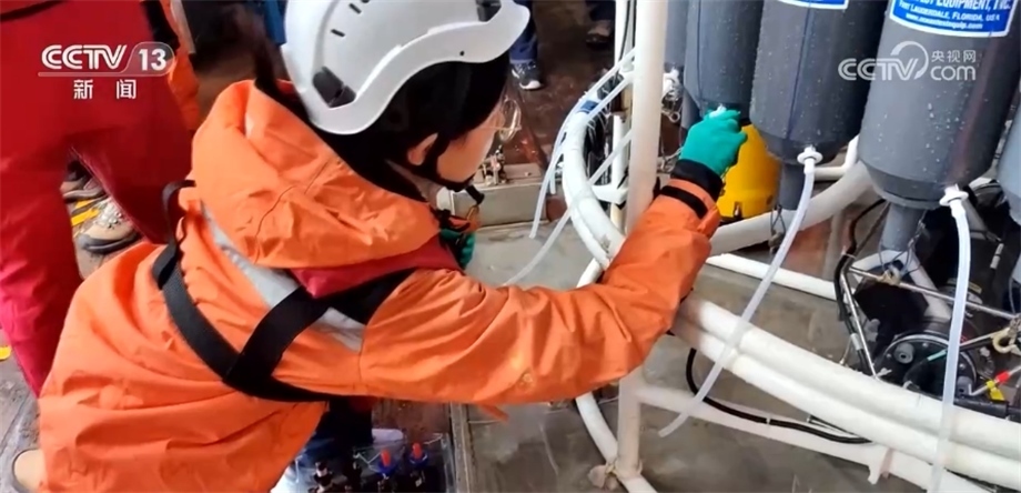 中國第13次北冰洋科學(xué)考察隊(duì)隊(duì)員 王穎:我們主要采的是溶解氧和DIC(溶解無機(jī)碳),溶解氧是為了測定海水中的氧氣含量,氧氣對海洋中生物的繁殖(生存)是非常有必要的。DIC(溶解無機(jī)碳)主要是為了測海洋中的溶解態(tài)的無機(jī)碳,要關(guān)注海洋中的碳的平衡。