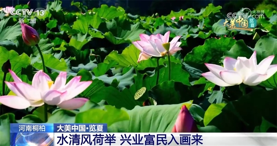 盛夏時(shí)節(jié),河南桐柏縣的兩萬(wàn)余畝荷田迎來(lái)了一年中最美的季節(jié)。從空中俯瞰,藍(lán)天白云之下,青翠的稻田與荷田相映成趣,沿著彎曲的河流交錯(cuò)分布,青山依依、碧水潺潺、煙波浩渺、荷葉田田,美不勝收。一株株荷花裊娜地開著,以粉紅色為主,或鵝黃或潔白,一幅絕美的鄉(xiāng)村生態(tài)畫卷徐徐展開。據(jù)了解,目前桐柏荷花主要有藕蓮、花蓮等多個(gè)品種類群。當(dāng)?shù)卣e極探索農(nóng)旅融合發(fā)展模式,在開展觀光旅游度假的同時(shí),蓮產(chǎn)業(yè)已成為群眾增收的新途徑。