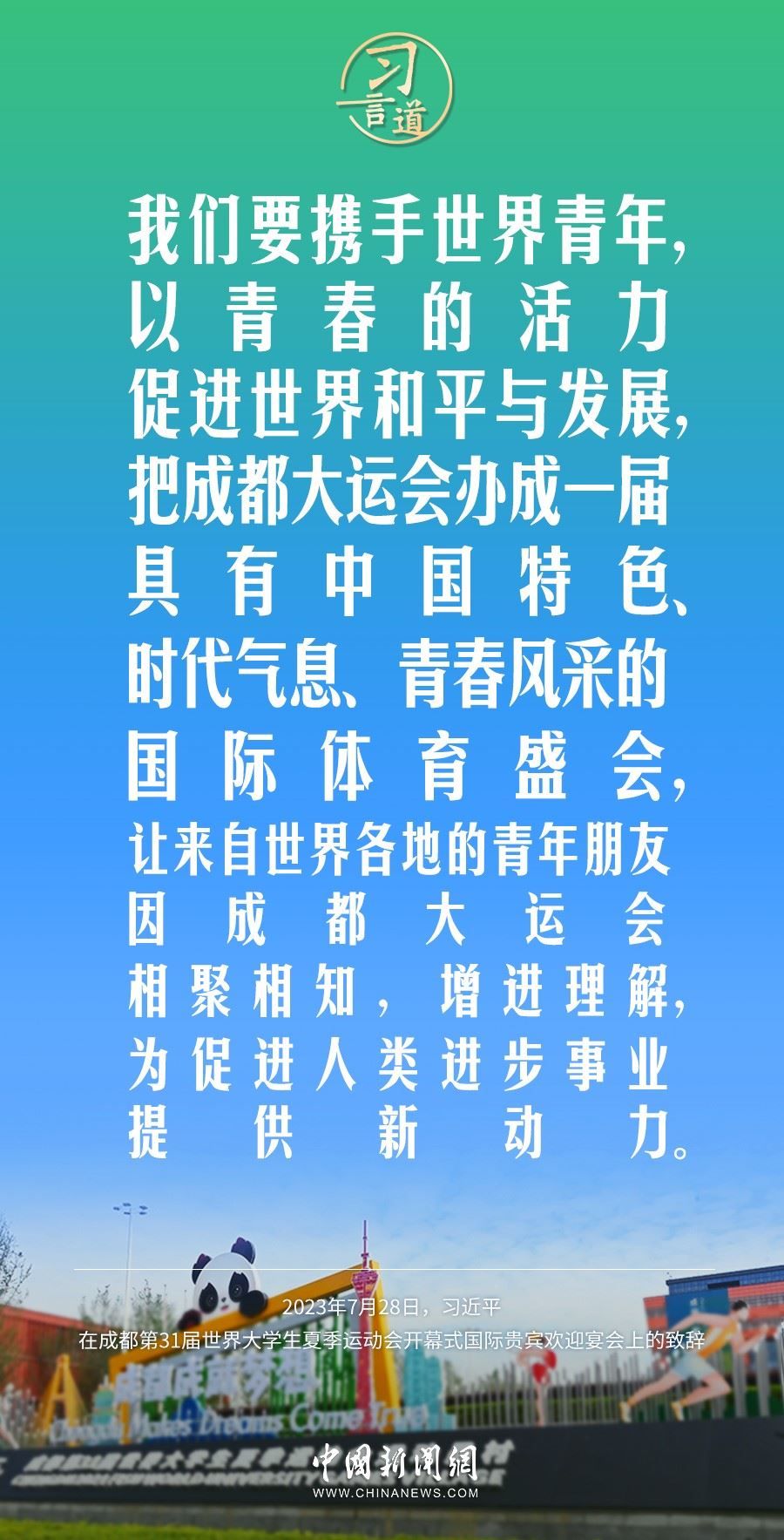 7月28日中午,國(guó)家主席習(xí)近平和夫人彭麗媛在四川省成都市金牛賓館舉行宴會(huì),歡迎出席成都第31屆世界大學(xué)生夏季運(yùn)動(dòng)會(huì)開(kāi)幕式的國(guó)際貴賓。習(xí)近平發(fā)表致辭稱——