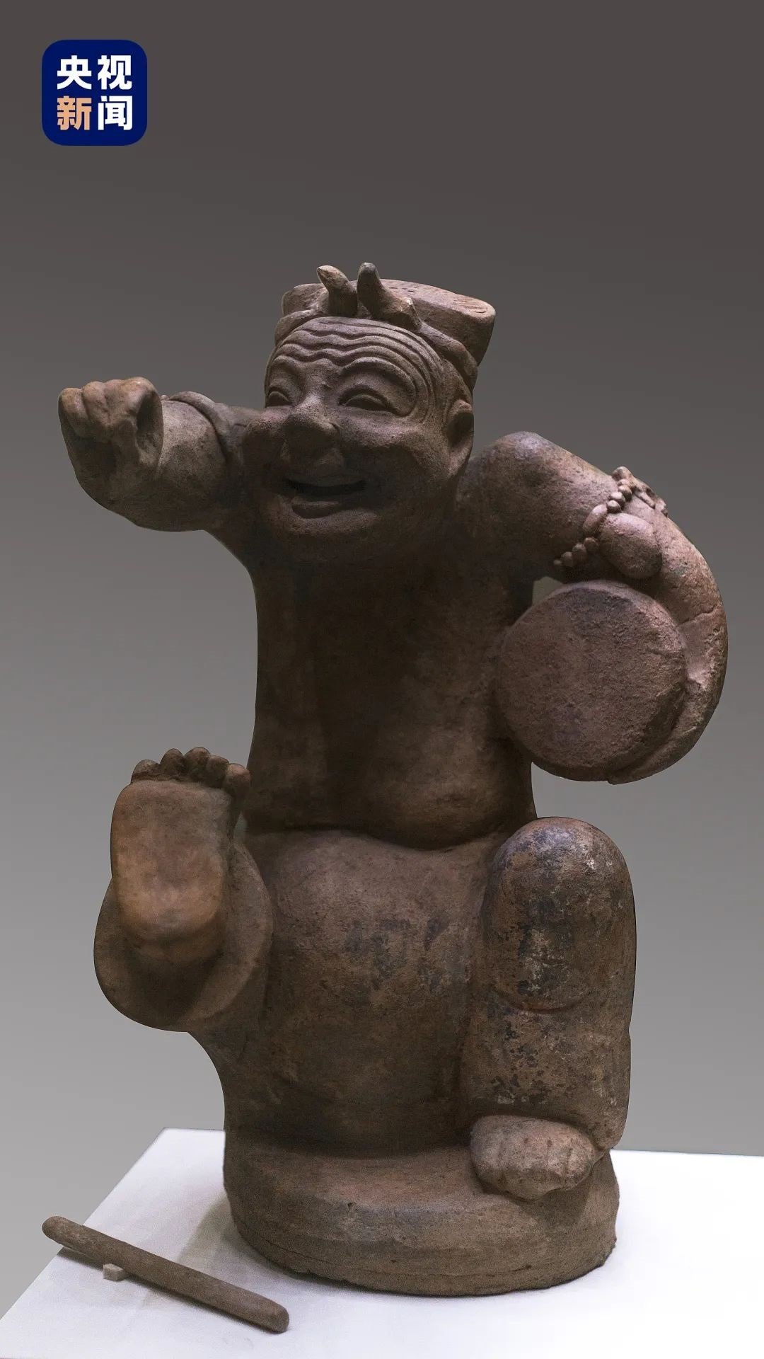 △東漢擊鼓說唱俑于1957年出土于成都市天回山東漢崖墓,現(xiàn)藏于中國(guó)國(guó)家博物館。