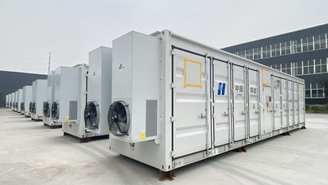 齊魯儲(chǔ)能谷零碳智慧產(chǎn)業(yè)園的儲(chǔ)能車(chē)間外擺放整齊的儲(chǔ)能集裝箱