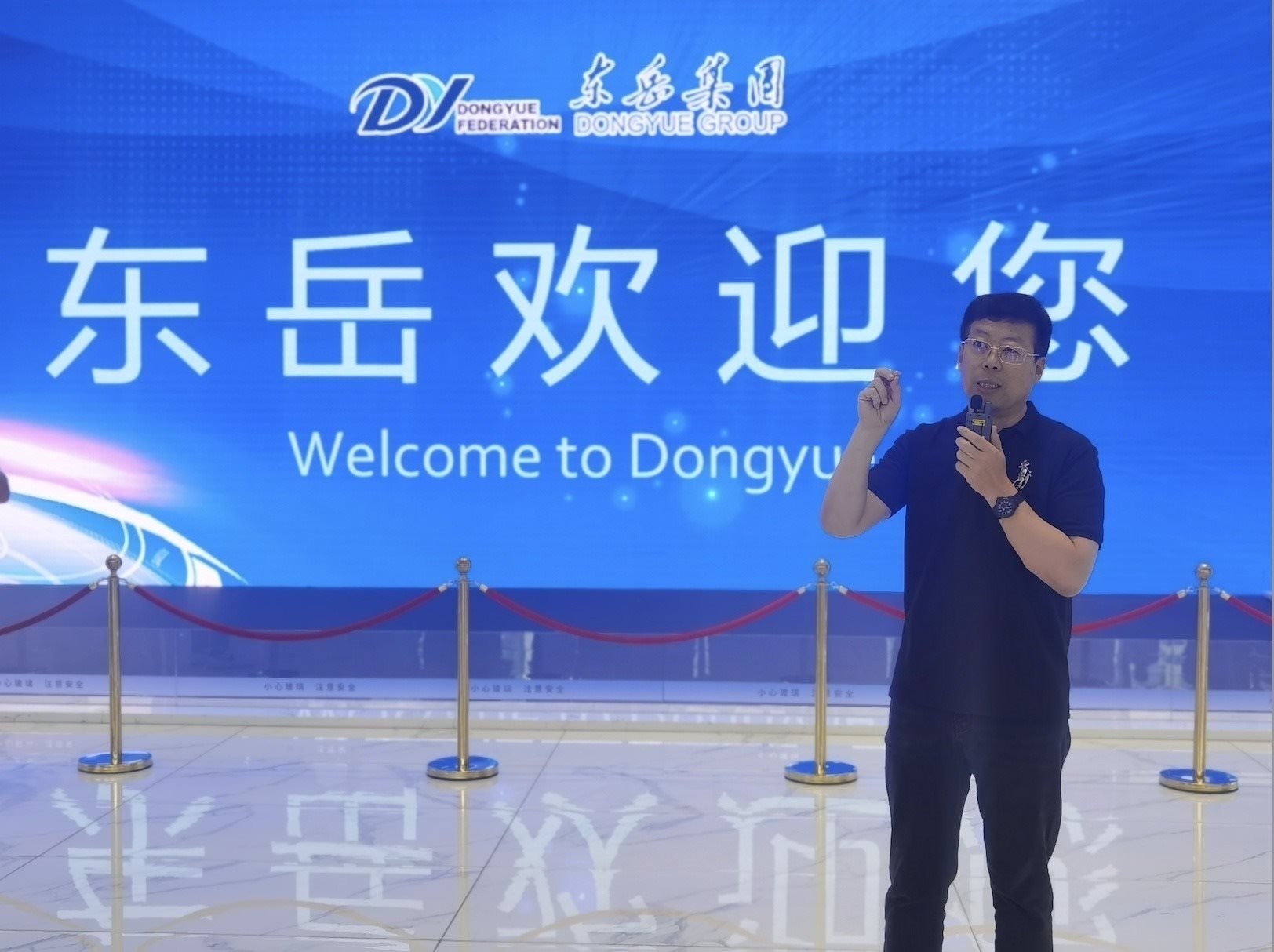 “高質(zhì)量發(fā)展調(diào)研行”采訪團(tuán)來(lái)到位于山東淄博市的山東東岳氟硅科技集團(tuán)調(diào)研,集團(tuán)副總裁李玉文在做講解