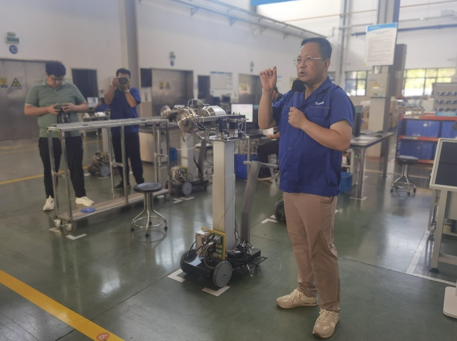 “高質(zhì)量發(fā)展調(diào)研行”采訪團(tuán)來(lái)到位于山東淄博市的山東新華醫(yī)療器械股份有限公司調(diào)研,工作人員王波在進(jìn)行講解