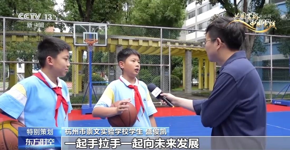 浙江杭州崇文實(shí)驗(yàn)學(xué)校學(xué)生 盛俊凱:我認(rèn)為共同富裕就是指城市人民和鄉(xiāng)村人民一起合作,一起手拉手,一起向未來(lái)發(fā)展。