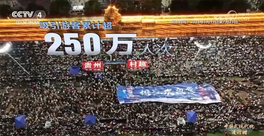 據(jù)統(tǒng)計,自今年5月“村超”開賽至7月上旬,榕江縣累計吸引游客超250萬人次,實(shí)現(xiàn)旅游綜合收入28.39億元。“村超”不僅展現(xiàn)了當(dāng)代中國農(nóng)民豐富的精神文化生活,更助推了鄉(xiāng)村振興。