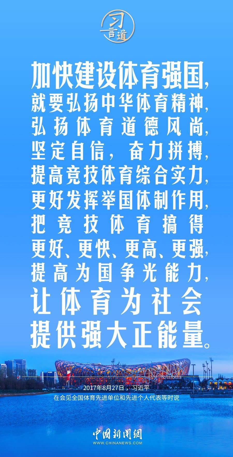 習近平總書記高度重視體育強國建設,多次作出重要論述,強調讓體育為社會提供強大正能量。